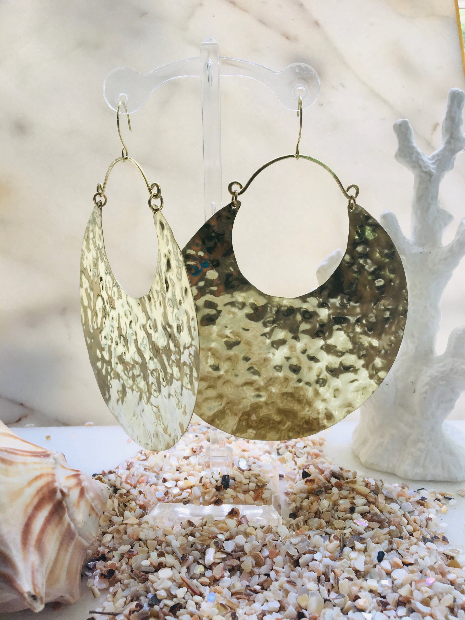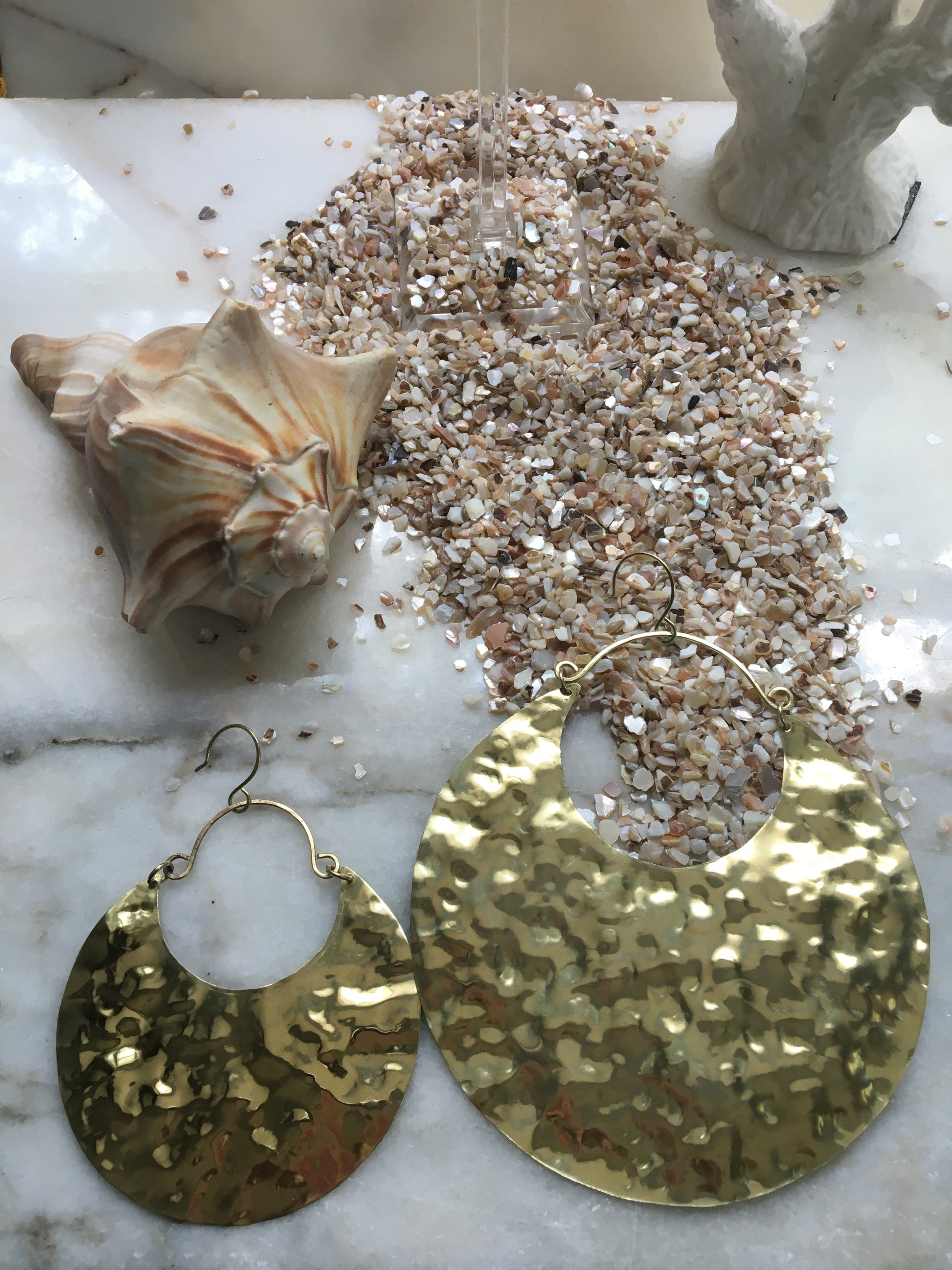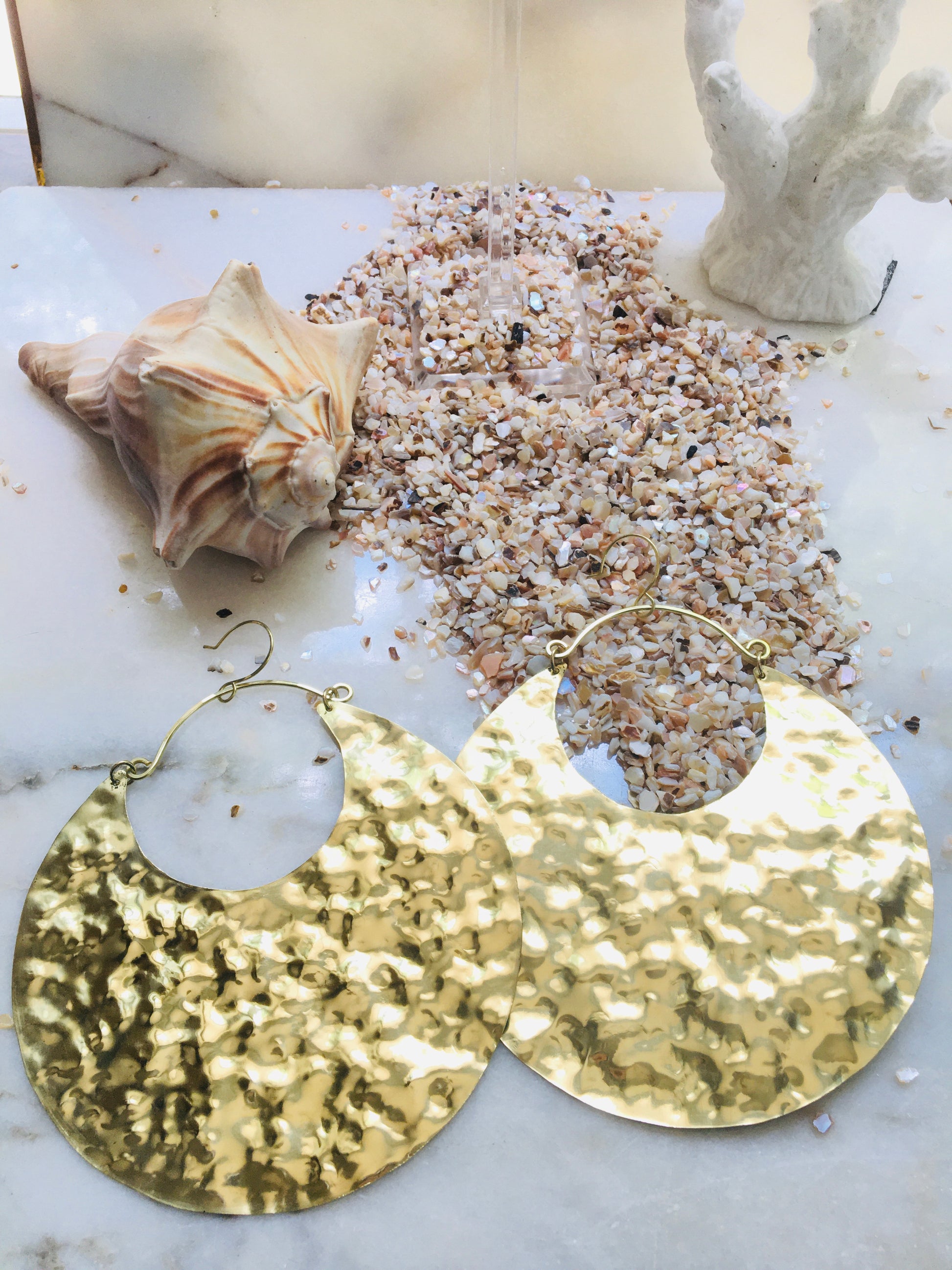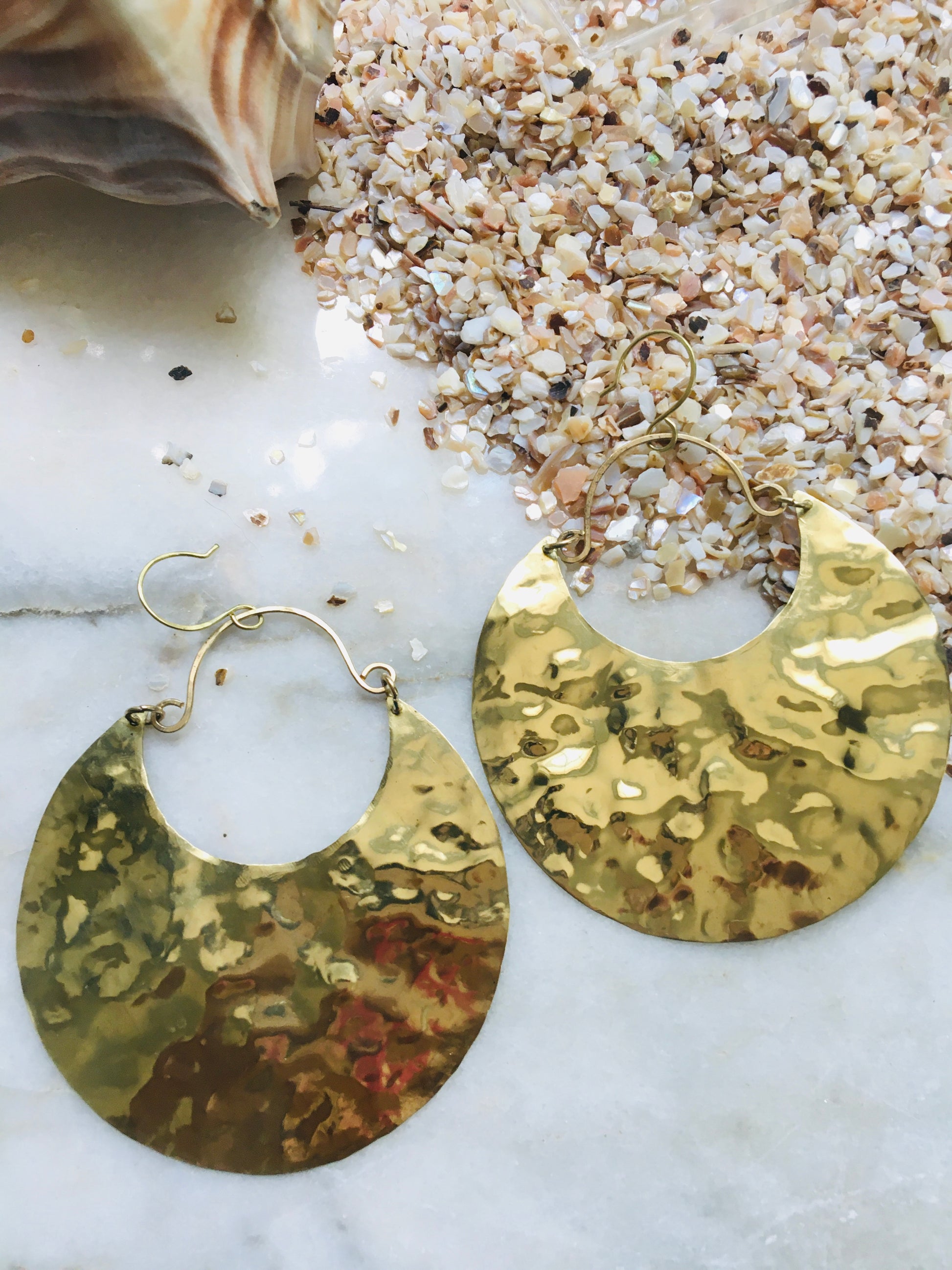 African inspired hammered brass earrings in two sizes. Light as a feather, perfect addition to your summer accessory collection