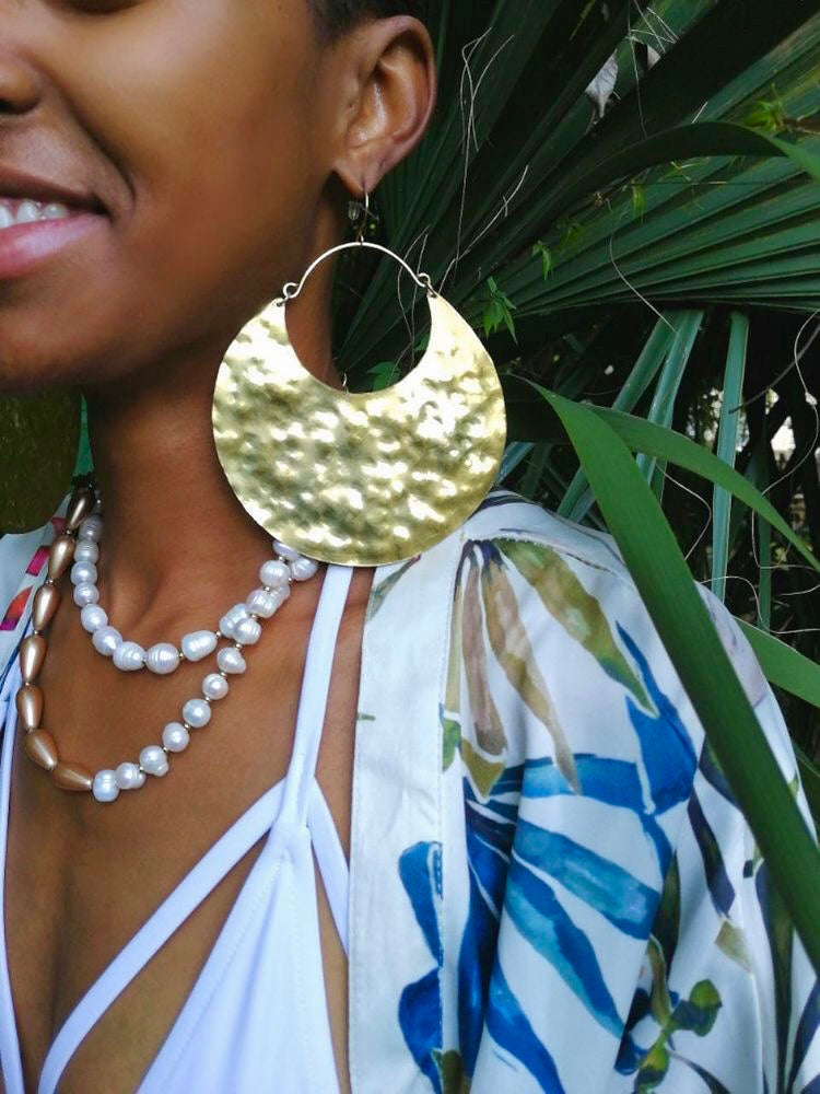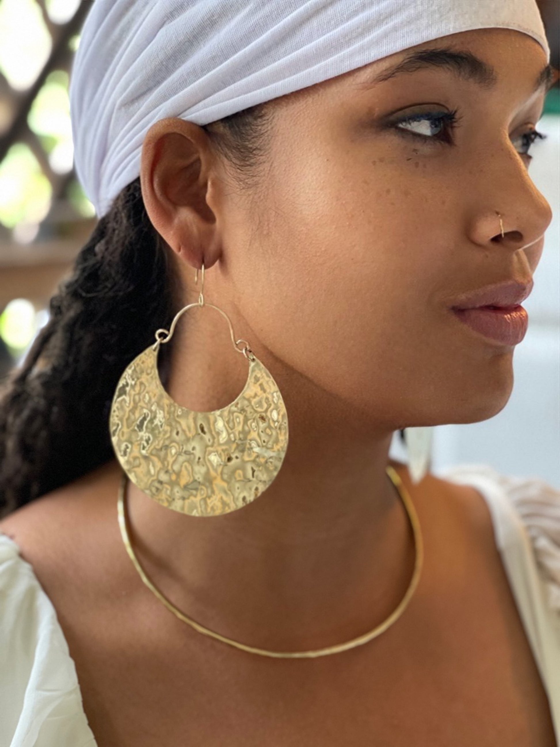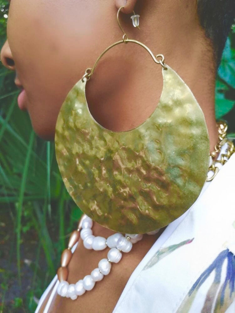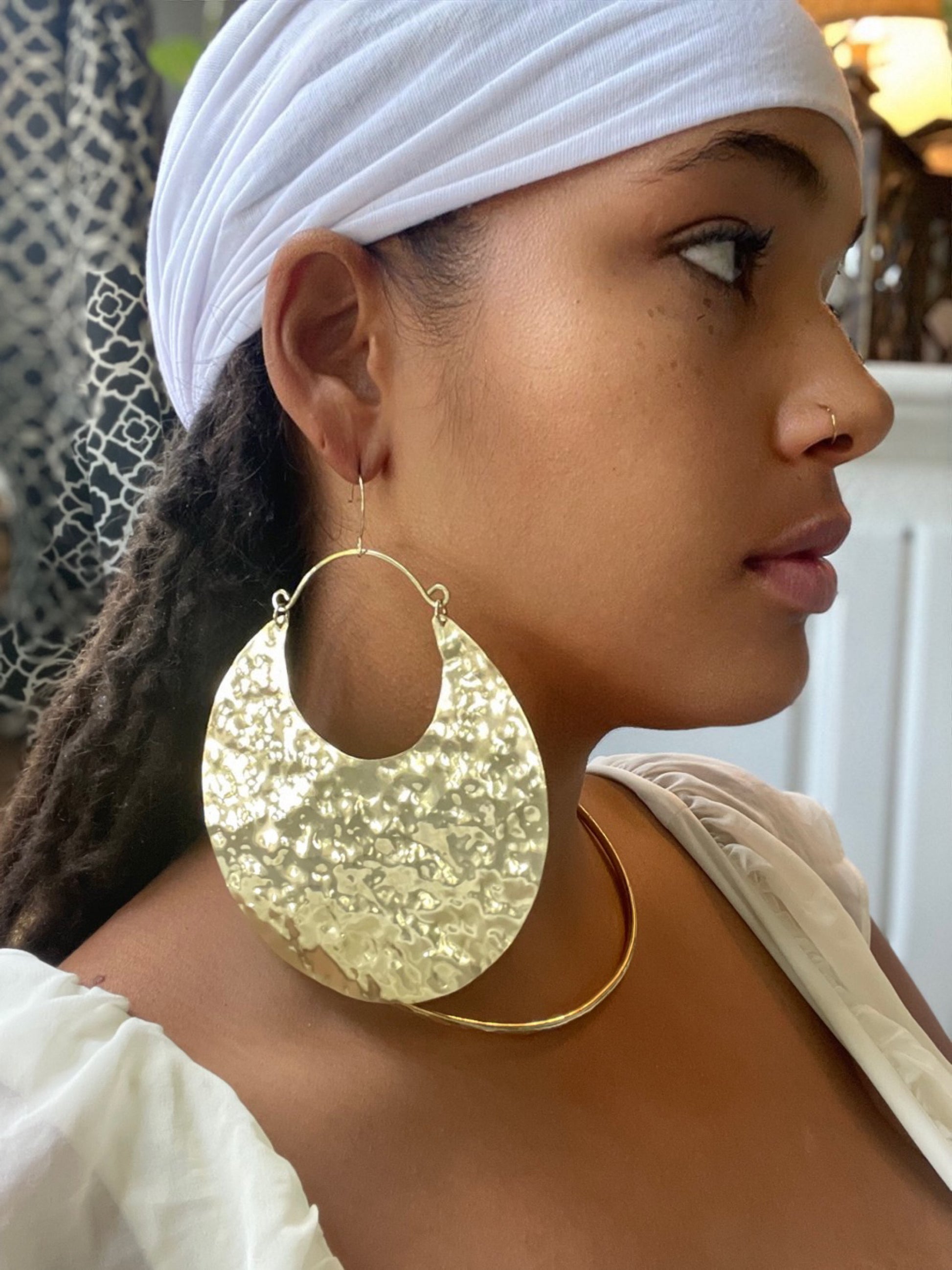 African inspired hammered brass earrings in two sizes. Light as a feather, perfect addition to your summer accessory collection