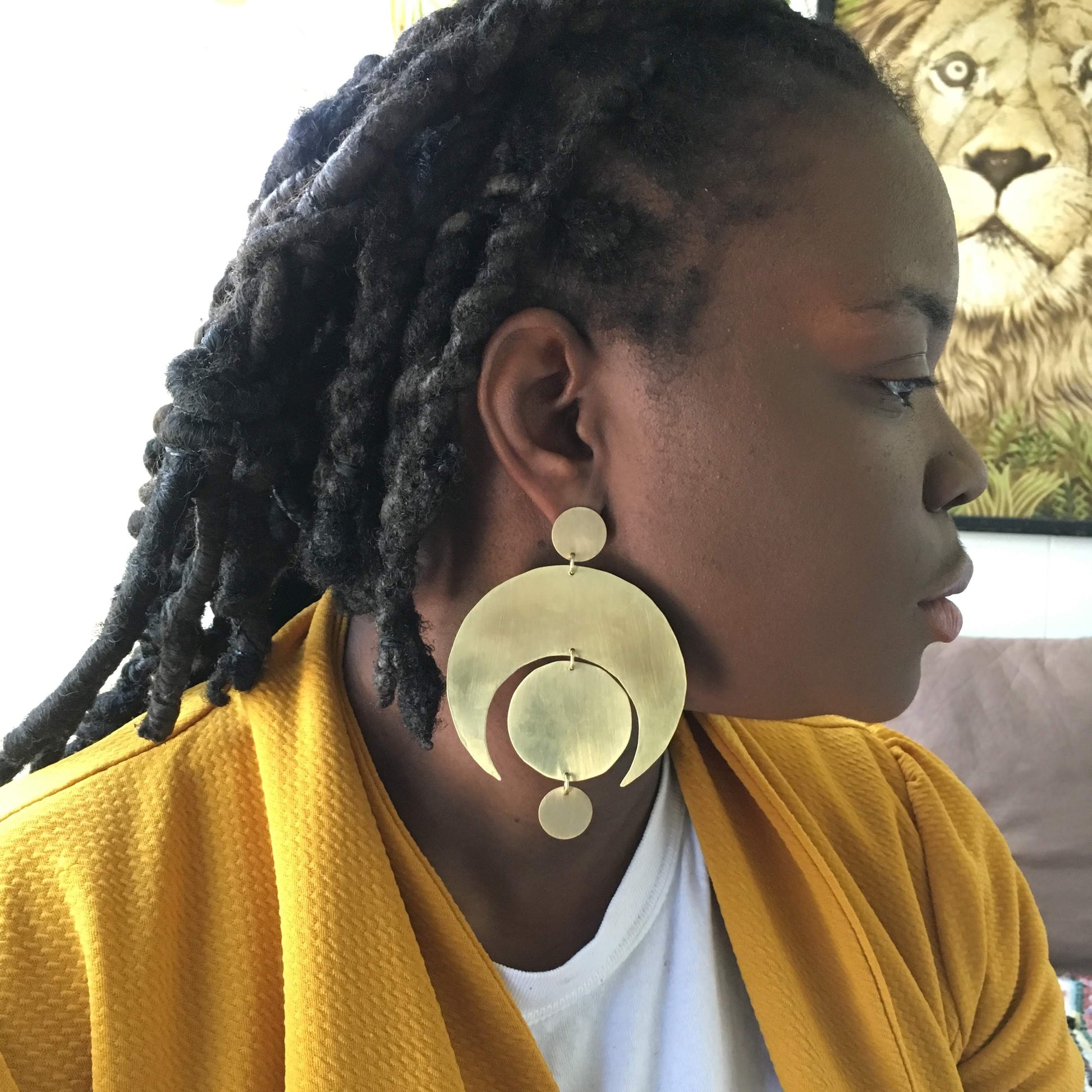 These lightweight statement earrings are as moving as a moonlit sky on a breezy summer evening. Handcrafted in brass and can be requested in silver. Nickel and led free for sensitive skin.