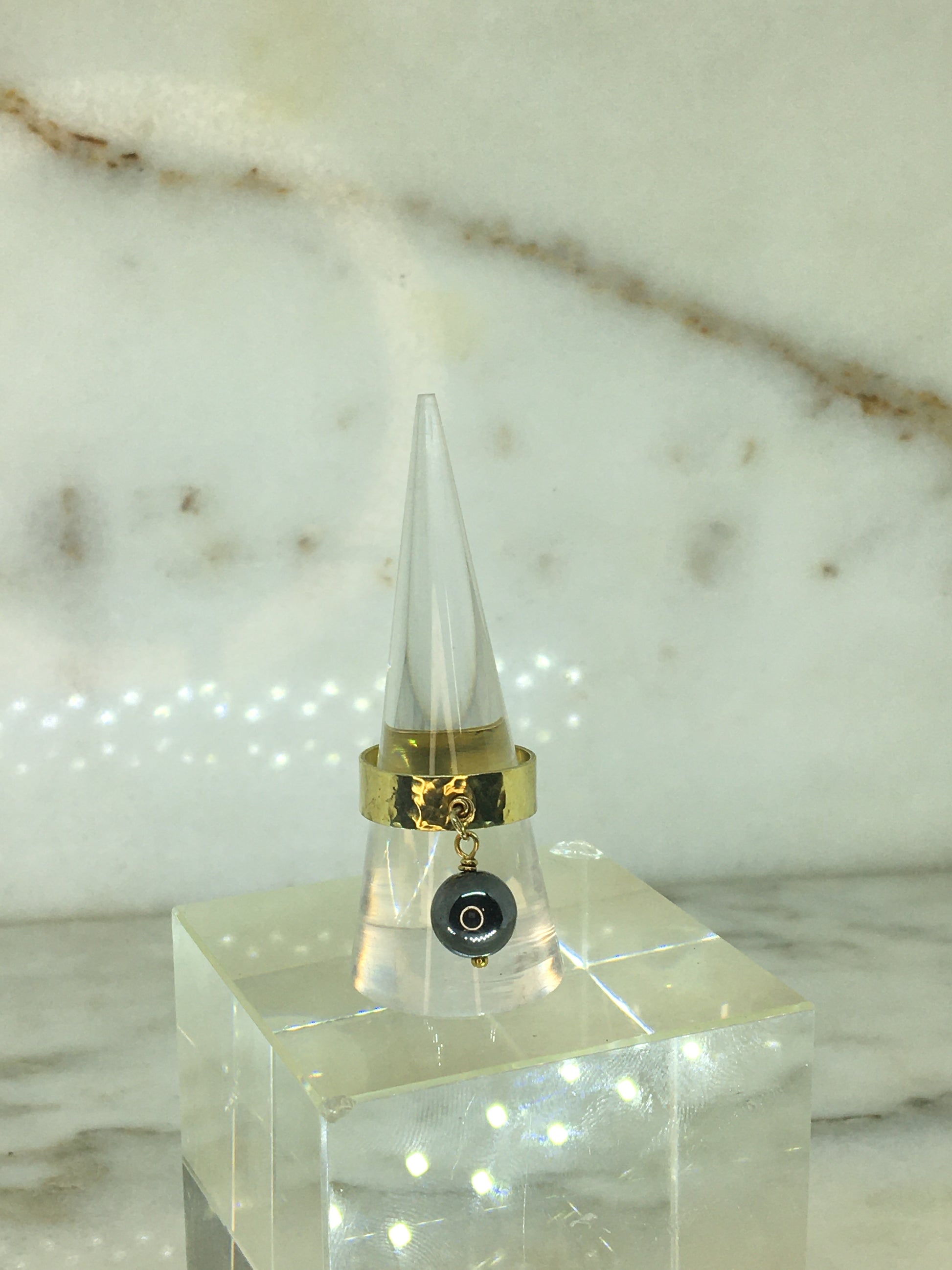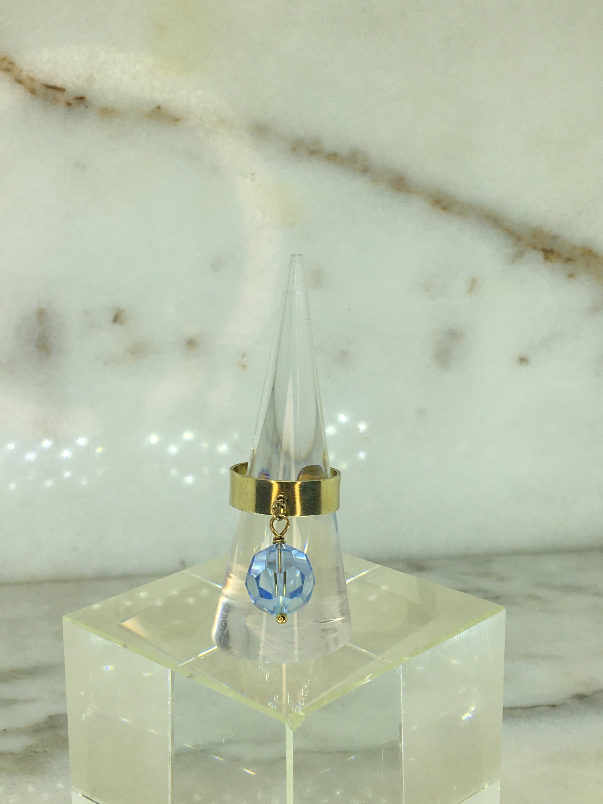 Classic cigar band style charm ring with vintage crystals, various charms and gemstones.