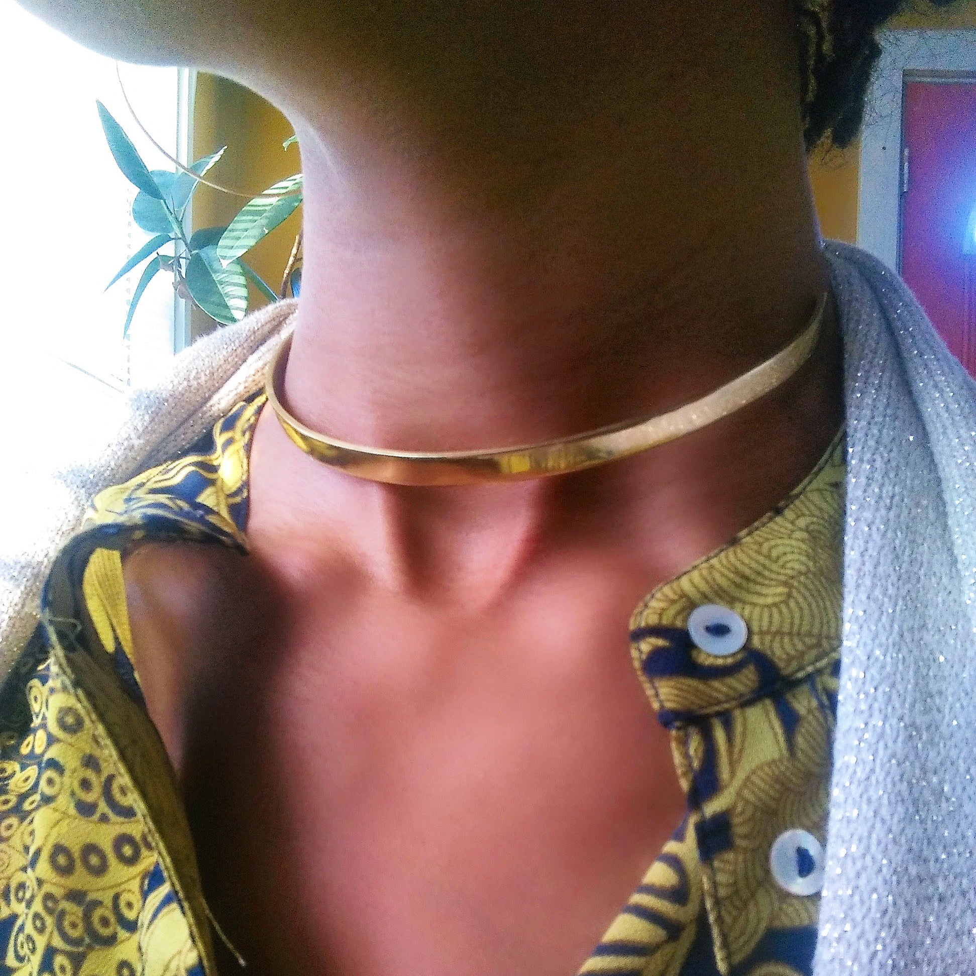 Unleash your inner goddess with NEMONI - a stunning brass collar/choker necklace. Made from heavy solid brass and finished with lacquer, it won't tarnish or need polishing. Its adjustable design and optional security chain make it both stylish and practical. Elevate your style and make a statement with NEMONI.