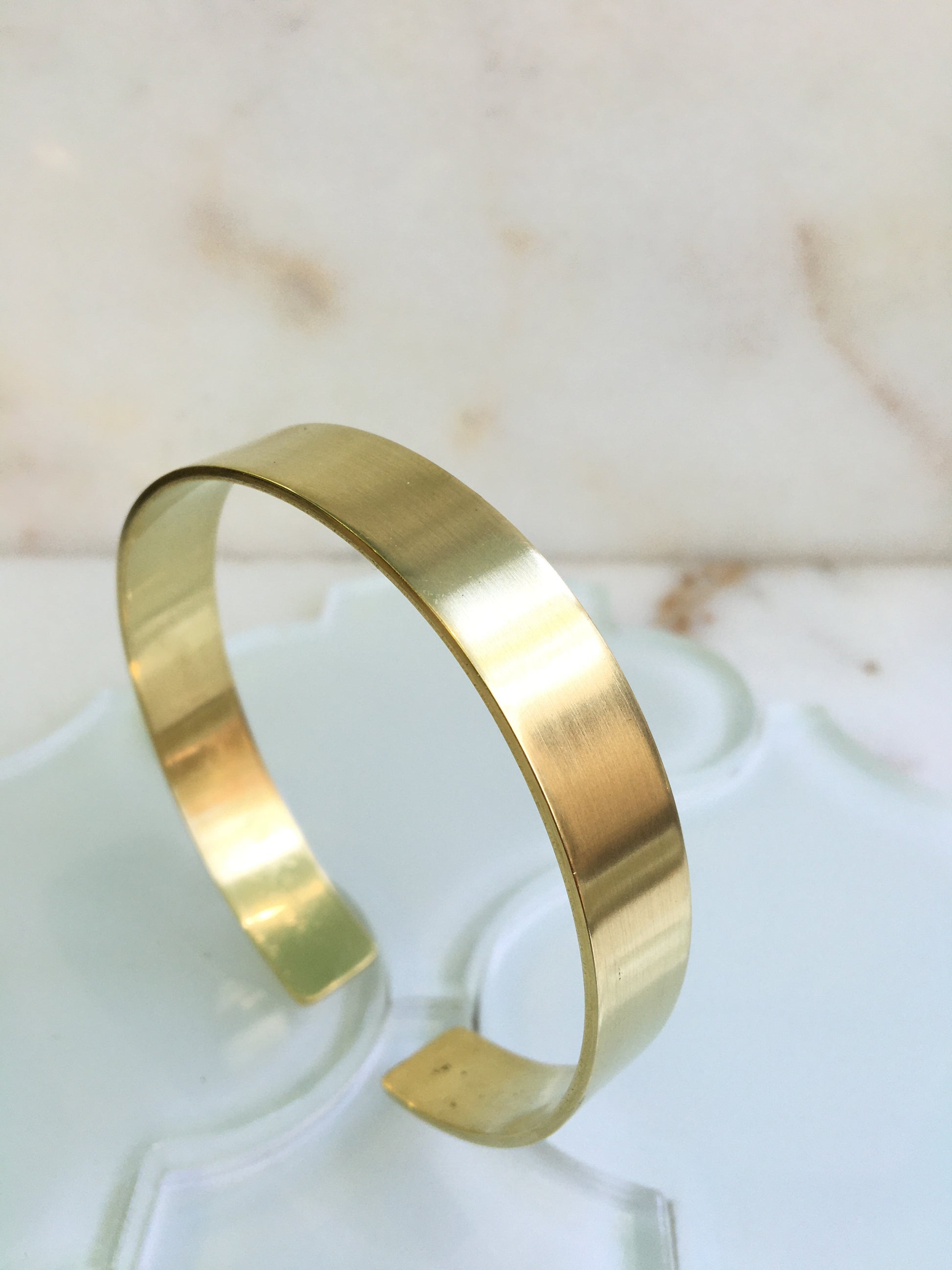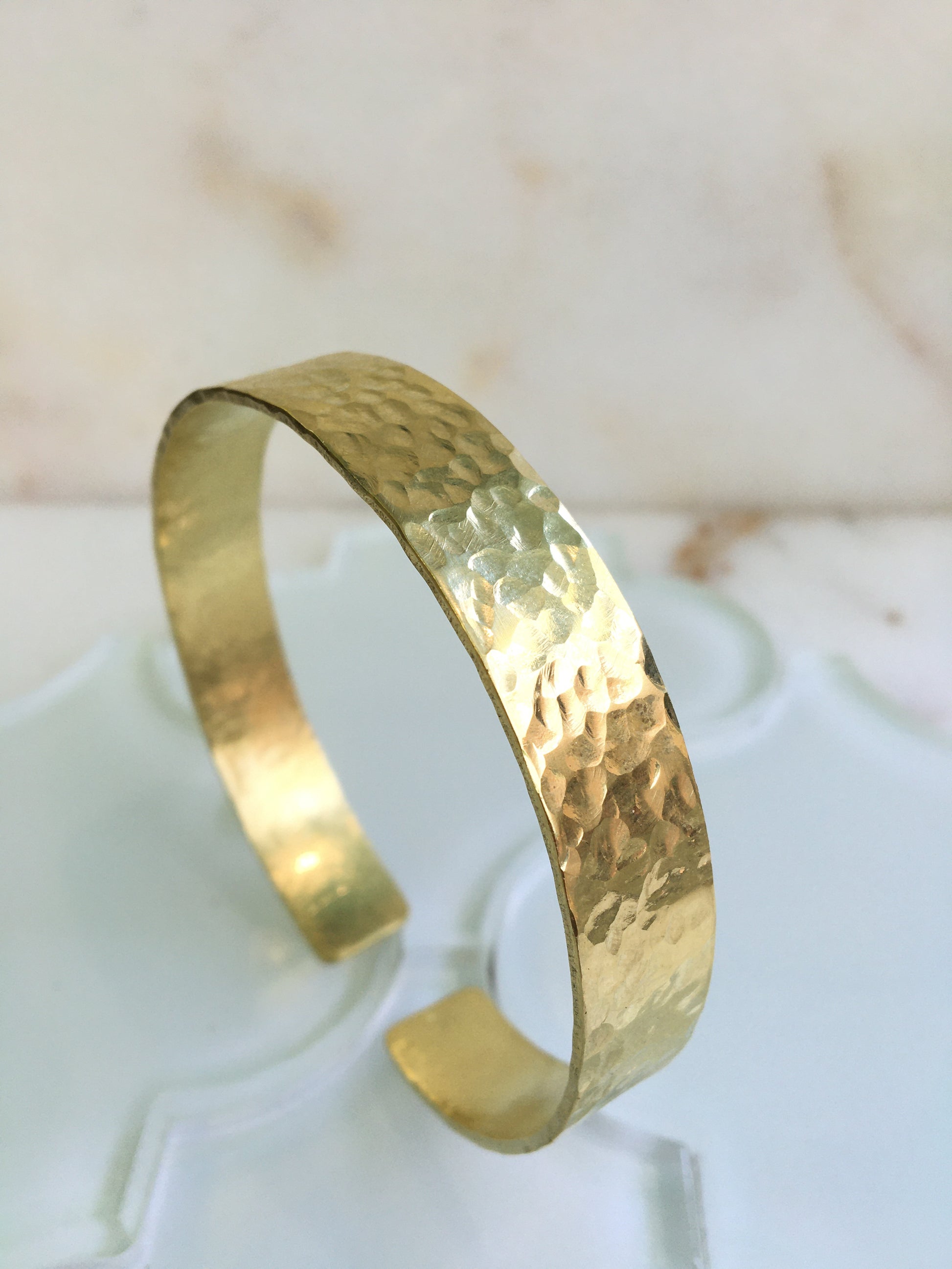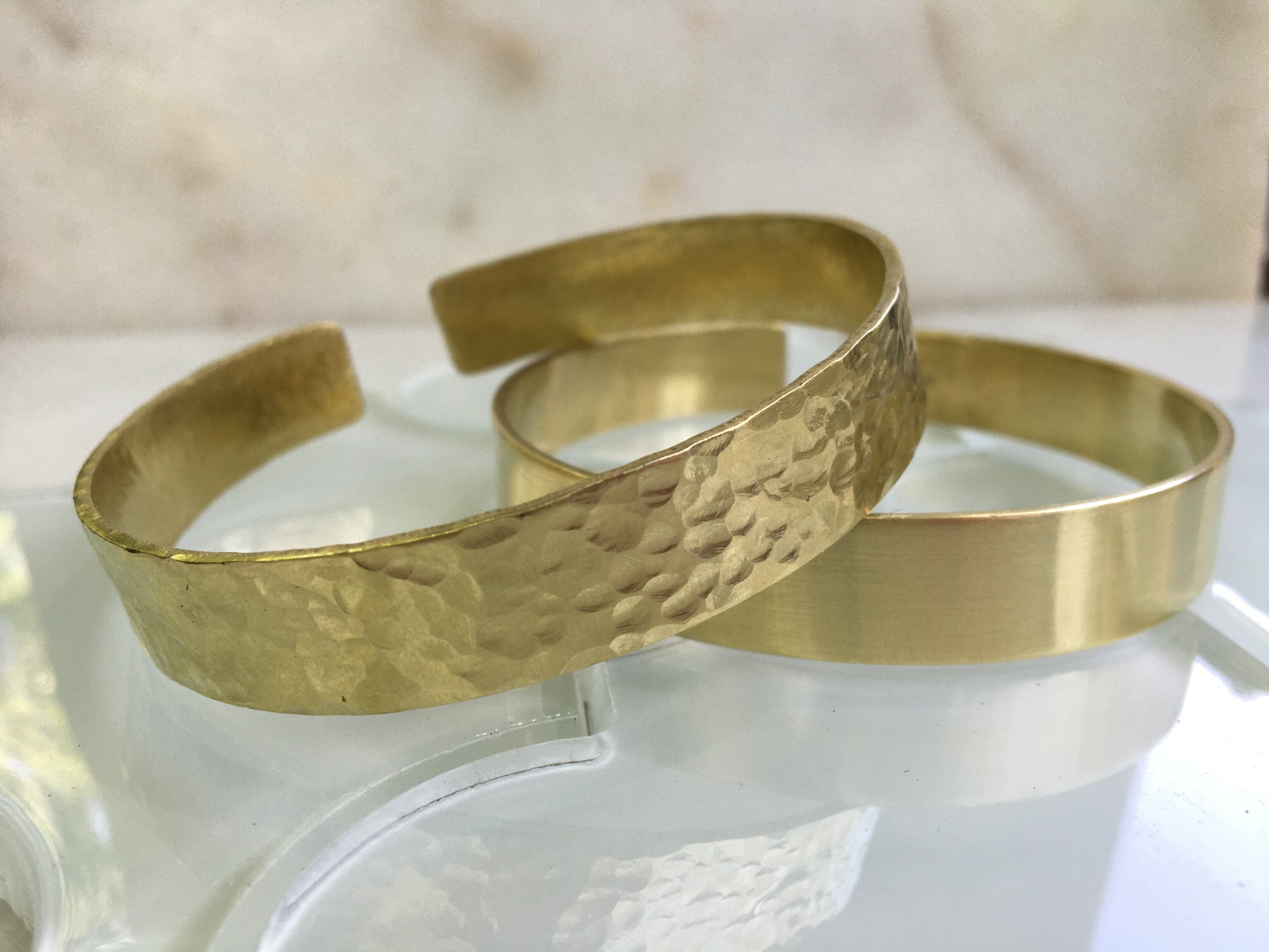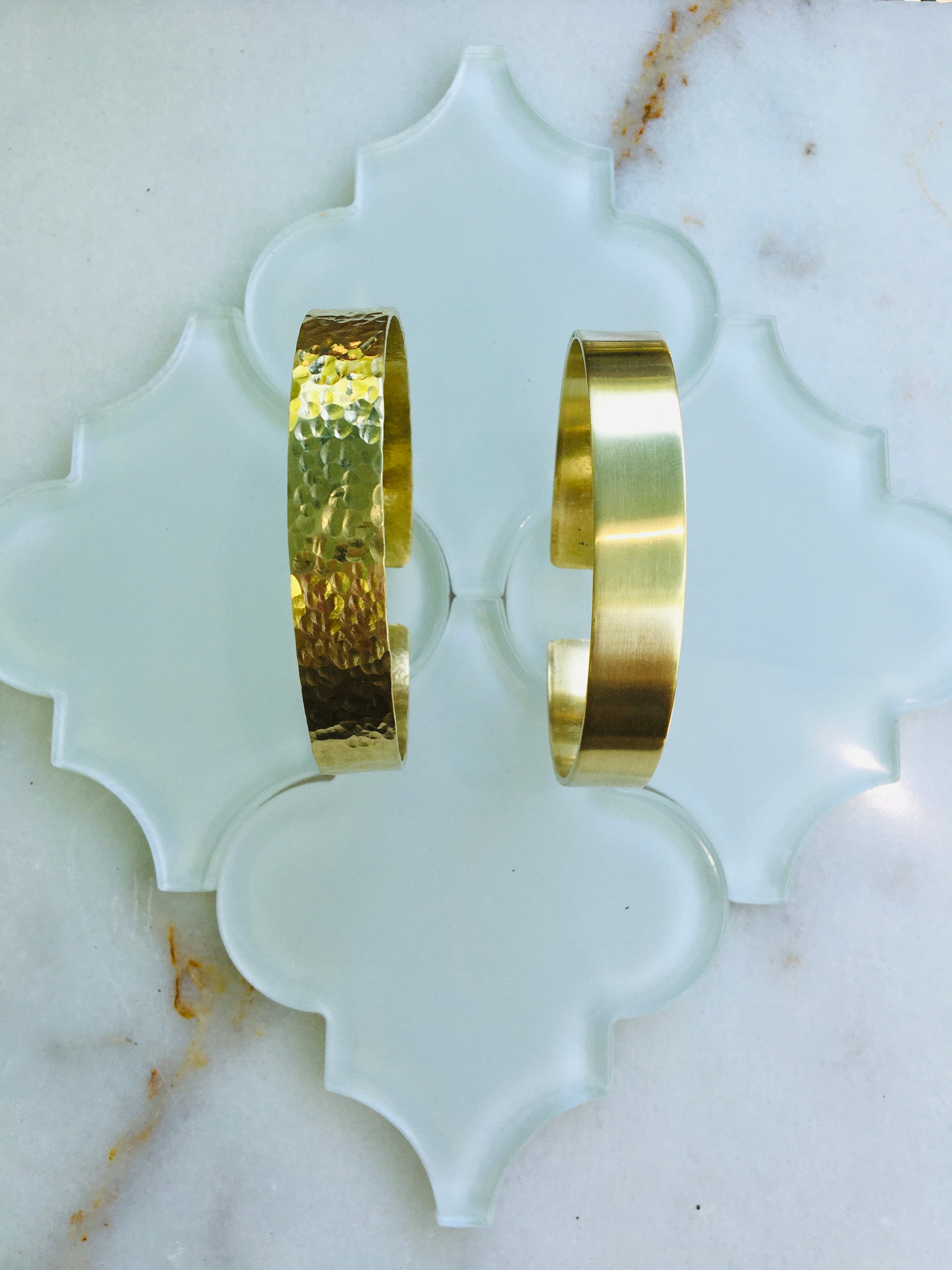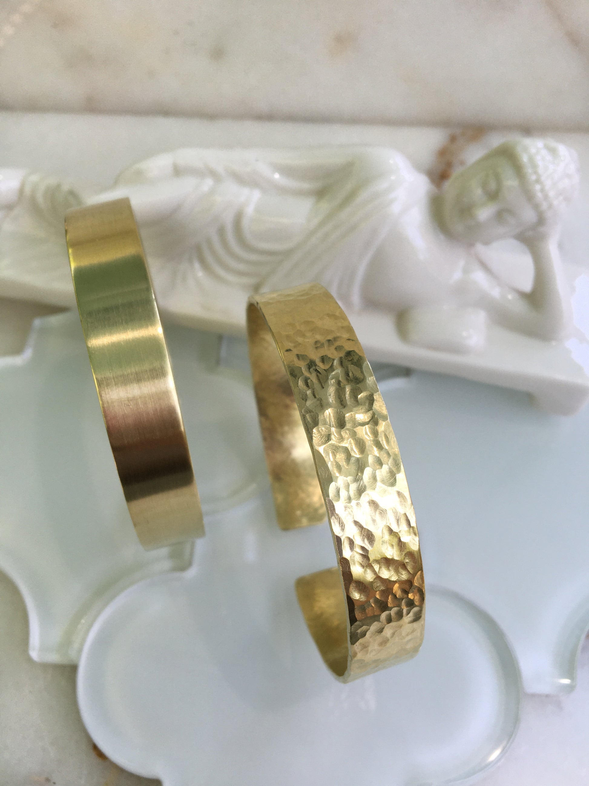 CHOLIE is 1/2” heavy gauge brass bangle bracelet set in hammered and satin finish.