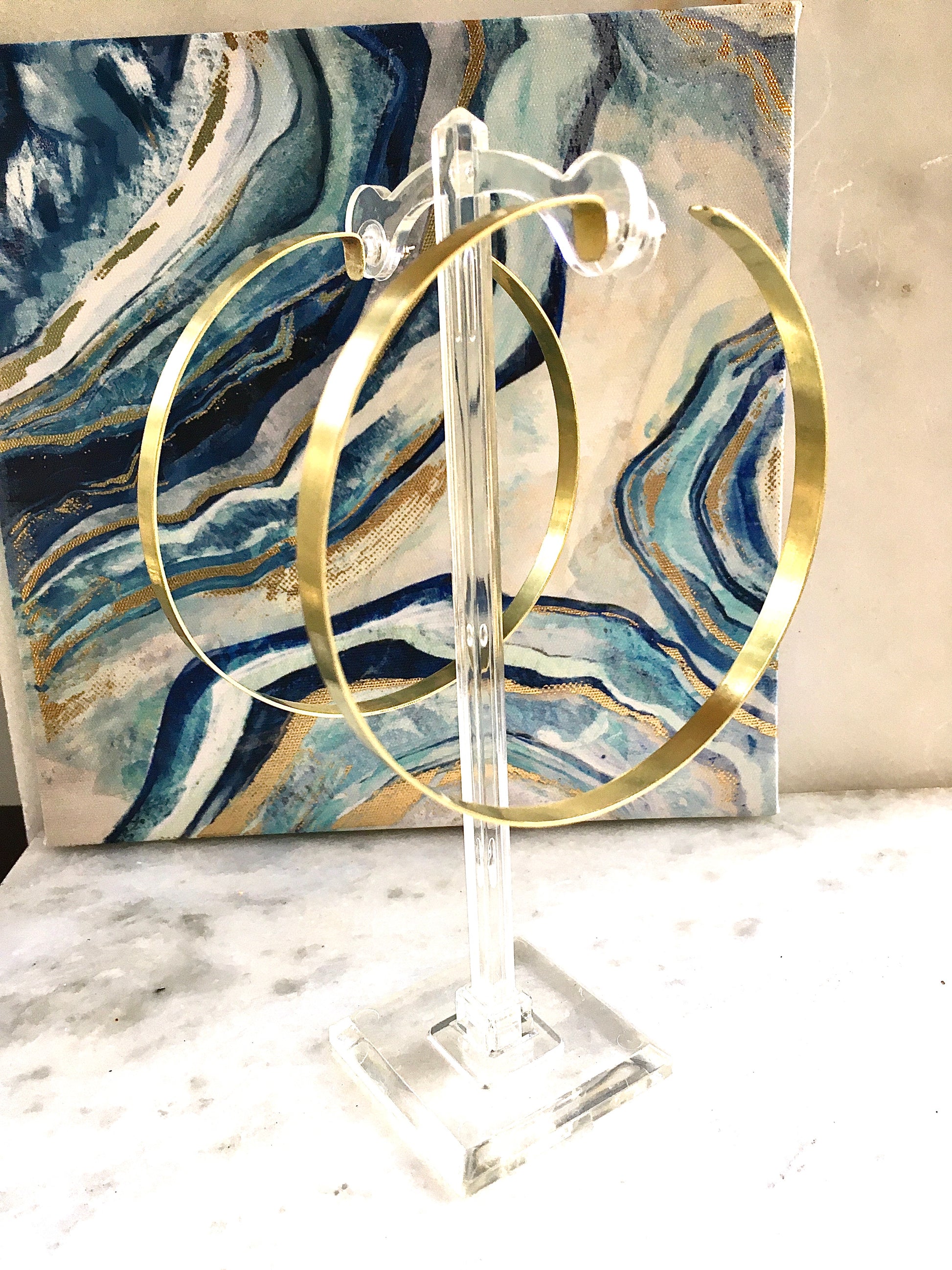 "Indulge in the opulent glamour of NYKOLE brass hoops. Each pair is meticulously handcrafted and finished with stainless steel posts for a luxurious feel. Available in popular sizes and perfect for making a statement, these XL hoops are the only time you can truly embrace being “Extra”.