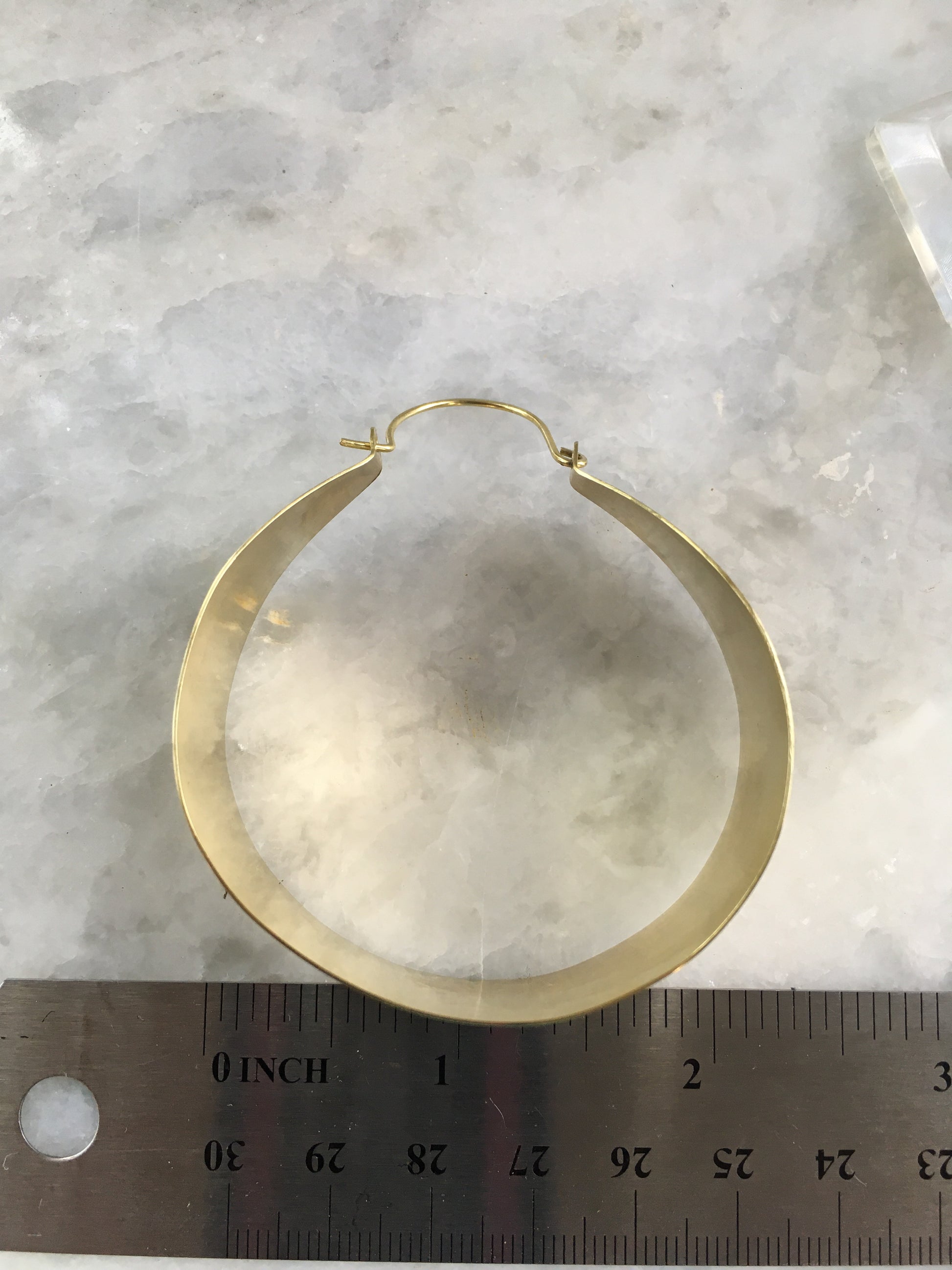 Handcrafted brass hoops, ready for summer fun. They are approximately 2” in diameter (large) and have a silky smoothie satin finish