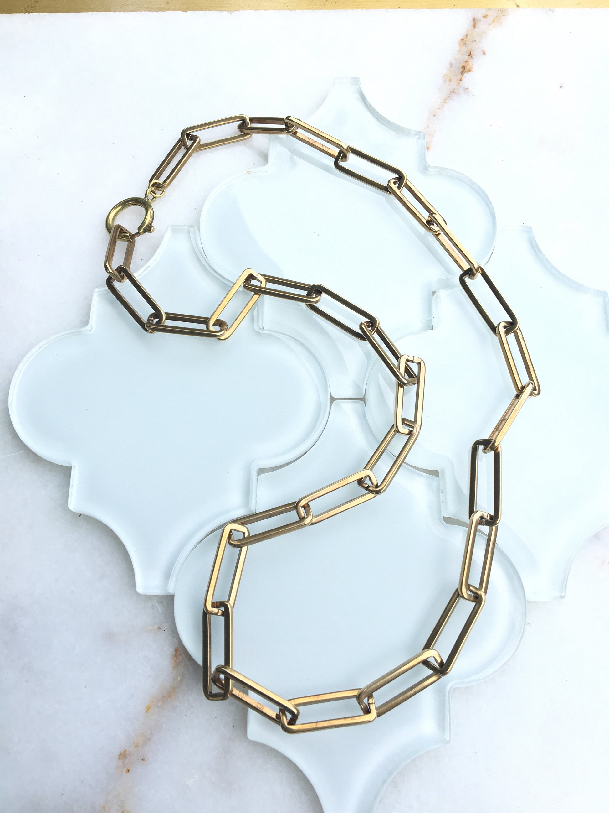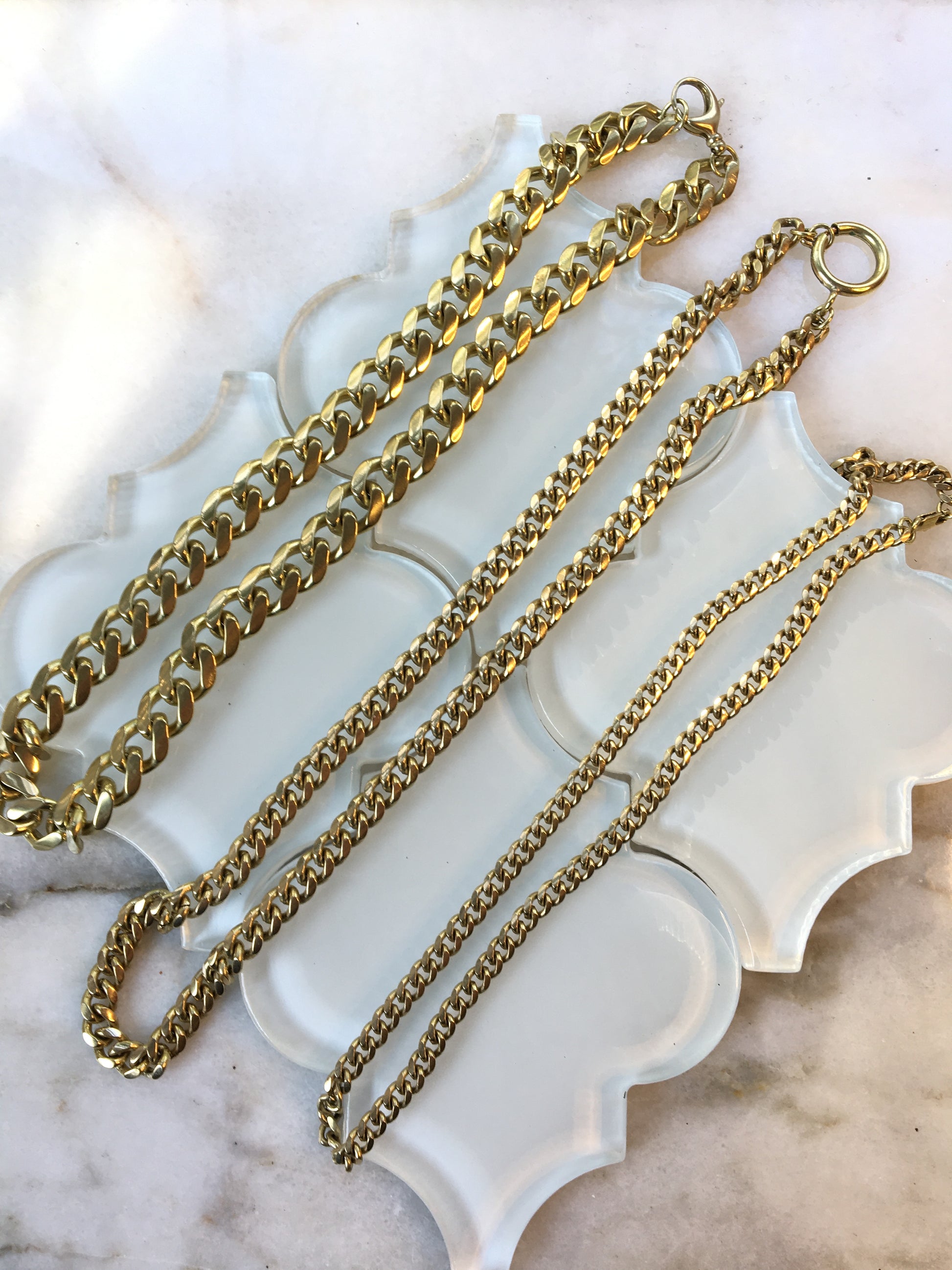 Solid brass chains in various lengths and styles. Perfect to layer with our beaded gemstone chains and pendant charms sold separately